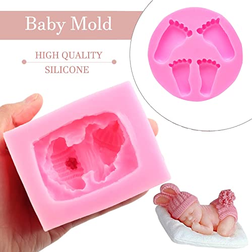 2 Pezzi Stampo Silicone a Forma di Neonato, Stampo in Silicone per Baby Shower, Stampi 3D in Silicone per Bambini, Stampo per Bambini Addormentato 3D, per Fondente, Cioccolato, Decorazione di Torte