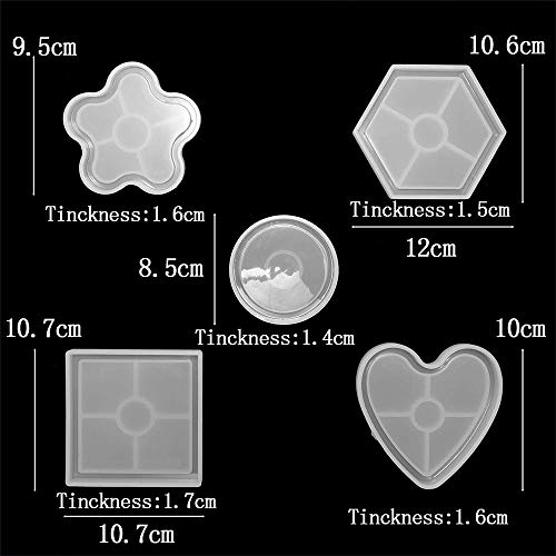 5 Pezzi Stampo in Silicone Sottobicchiere, Stampi Geometrici in Fusione di Resina, Rotondo, Quadrato, Fiore di Prugna, Esagono e Forma di Cuore, per Forniture Artistiche Fai-da-Te