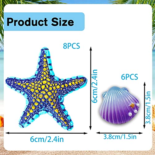 【Mini giocattoli da spiaggia】 Riceverete 14 pezzi di animali marini, tra cui 8 piccole stelle marine e 6 piccole conchiglie. I colori sono brillanti e luminosi. Adatti ai bambini per giocare in spiaggia in estate, facili da prendere e tenere in mano, appropriati e accattivanti da guardare;