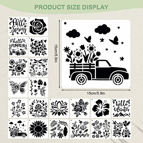 【Cosa Riceverete】: Riceverete 20 fogli di stencil piccoli in diversi stili, ogni floral stencils misura circa: 5,9 x 5,9 pollici / 15 x 15 cm, un'abbondanza di quantità e stili per darvi infinite possibilità di creare vari progetti artistici fai da te.