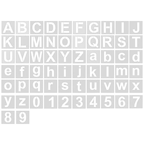 62 Pezzi Stencil Lettere, Normografo de Alfabeto e Numeri Riutilizzabili per Pittura Disegno Scrapbooking DIY Artigianato (5 Pollici)