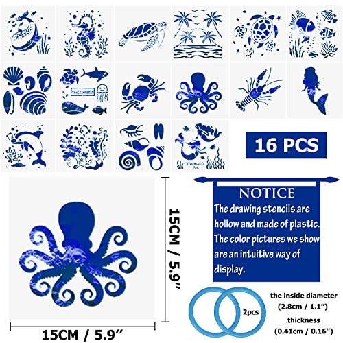 38 pezzi Stencil per Pittura con 2 Anelli per Raccoglitori, 15cm/13cm Creature dell'oceano Marino Modelli di Pittura Stencil da Disegno per Lavori Fai Da Te Scrapbooking Pittura su Parete in Legno