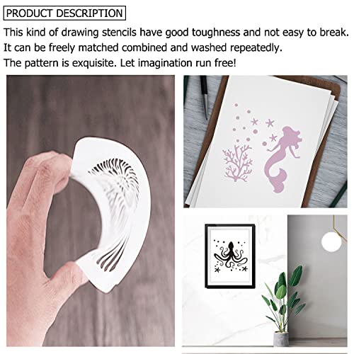 DESIGN CREATIVO - Questo set di stencil per pittura è progettato con vari temi di vita marina, come sirene, cavallucci marini, polpi, tartarughe, pesci, granchi, conchiglie, ecc. Possono essere utilizzati per scrapbooking fai da te o per dipingere su legno, pavimento, parete . Usa questi stampi per pittura creativa per decorare la tua casa e le tue opere d'arte.