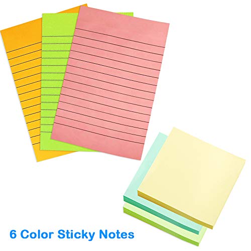 6 pezzi Sticky notes Pads, FineGood notes righe 50 fogli/Pad (pollici x 6 pollici) e 100 fogli/Pad (7,6 x 7,6 cm) - multicolore