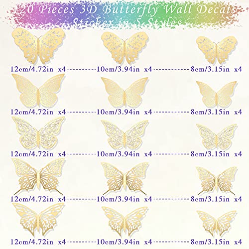 120 Pezzi 5 Stili Decalcomanie Adesive a Farfalla 3D Svuota da Parete Arte da Muro Decorativa Decal Murali 3 Misure per Stanza Casa Asilo Aula Ufficio Bagno Soggiorno (Dorato)