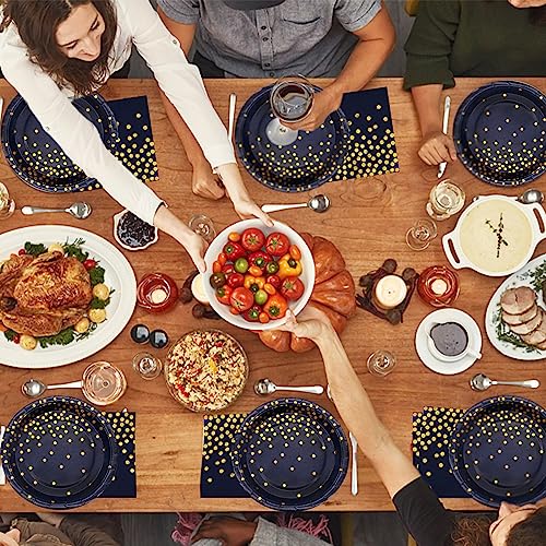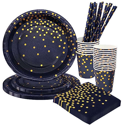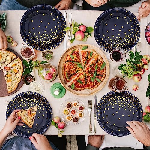 80 Pezzi Blu Navy e Oro Stoviglie per Feste, Stoviglie Carta Set Include Piatti di Carta Tovaglioli Tazze di Carta Cannucce per Compleanni Matrimonio Nascita Battesimo Party (20 Ospiti)