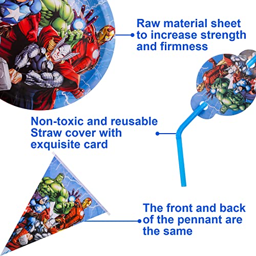 52 Pezzi Set Stoviglie per Feste Kit Festa Compleanno con Avengers Supereroe Includere Piatti e Bicchieri Tovaglioli Cannucce Tovaglie Striscioni per Decorazioni Festa Compleanno per 10 Bambini