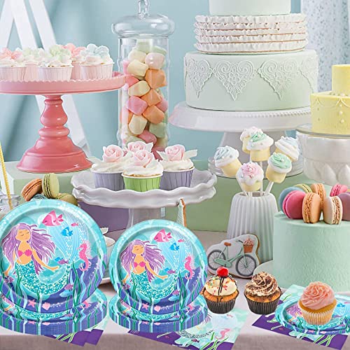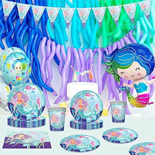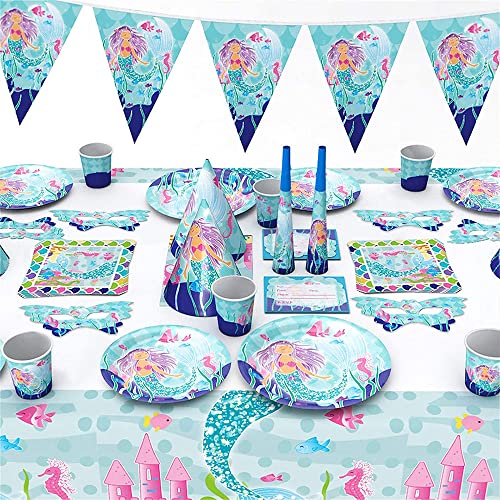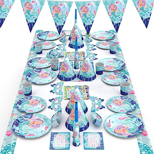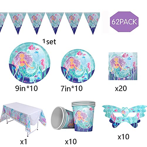 62 Pezzi Stoviglie Per Feste a Sirena, Set Di Stoviglie Per Feste Da Sirena, Set Di Posate Per Feste, Piatti Tazze Tovaglioli Maschera Striscione Per Compleanni, Feste, Utensili Picnic All'Aperto