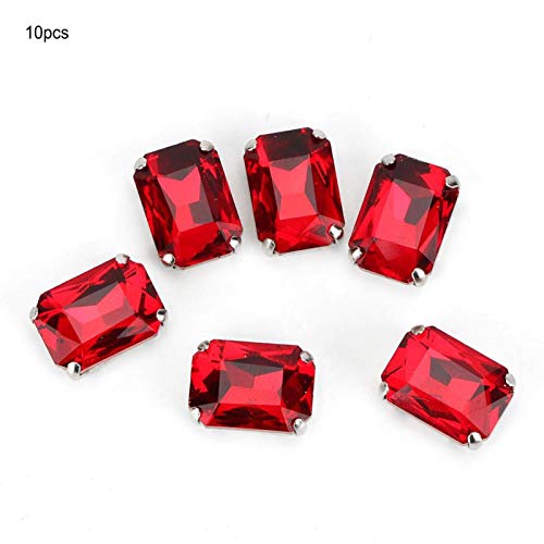 10 Pezzi Strass per Cucire Rettangolo, Strass Artiglio, Cristallo Colorato Artificiale per Accessori per Abbigliamento Fai-Da-Te (Rosso)