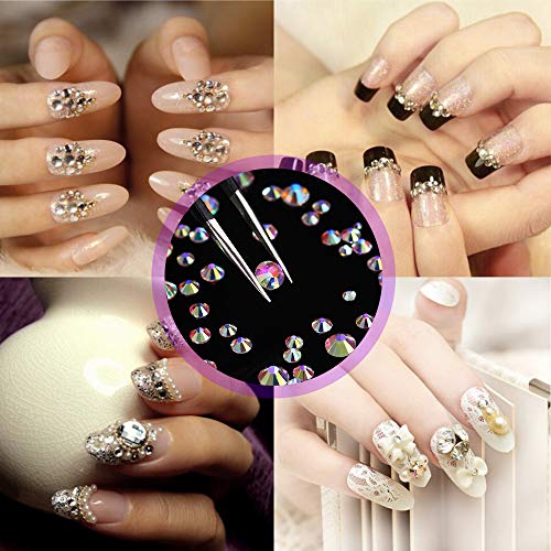 ღ [Quantità] Ogni confezione contiene 6 cristalli di colore AB, la quantità è di circa 1600 pezzi:1,3 mm (SS3 500 pezzi), 2 mm (SS6 300 pezzi), 2,8 mm (SS10 300 pezzi), 3 mm (SS12 300 pezzi), 4 mm (SS16 100 pezzi), 4,8 mm (SS20 100 pezzi). Include anche 1 penna per punteggiatura picker e 1 pinzetta pick up, adatta per creare vari stili di nail art.