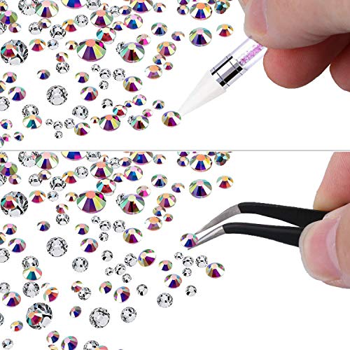 1500 Pezzi di Strass per Unghie, AB Piccoli Strass Unghie Nail Art E Cristallo con Strass Trasparenti, Strass Unghie Varie Dimensioni con 2 Pinzette e Scatola Dell'Organizzatore