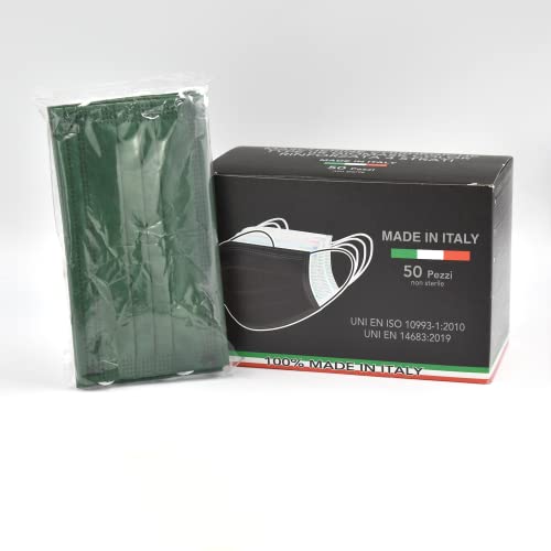 50 Pezzi 4 Strati Mascherine Chirurgiche Colorate, Mascherine Chirurgiche, MADE IN ITALY CE Tipo IIR, Nasello Regolabile,Ultraleggere (Verde)