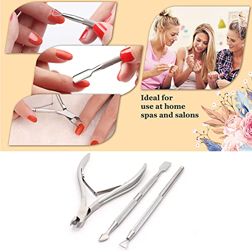 3 Pezzi Kit di Strumenti per Manicure,Tronchesi per Cuticole,Cuticola Nipper con Cuticola Spingi Cuticle Decoratore in Acciaio Inox Cuticola Remover e Taglierina,per Unghie e Unghia del Piede,Argento