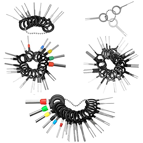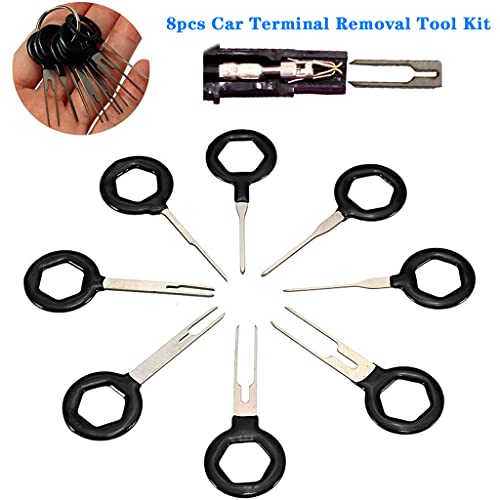 (Facile da usare): non è necessario aprire i morsetti, basta premere e tirare i perni di bloccaggio. Gli strumenti per rimuovere i morsetti del veicolo possono essere facilmente rimossi dal connettore del cablaggio e aggiungere un nuovo cavo, in modo da poter mantenere il cablaggio originale di fabbrica e collegare il proprio dispositivo elettronico senza danni.