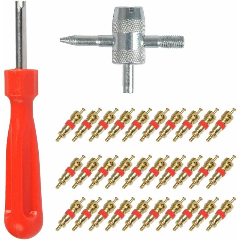 uno strumento di riparazione dello sterzo a 4 vie argento. Il pneumatico della valvola è realizzato in ottone: l'ottone è più resistente all'usura rispetto ad altri materiali disponibili sul mercato ed è il miglior materiale per la fabbricazione di valvole. Chiave a valvola: maniglia in plastica + chiave in acciaio;