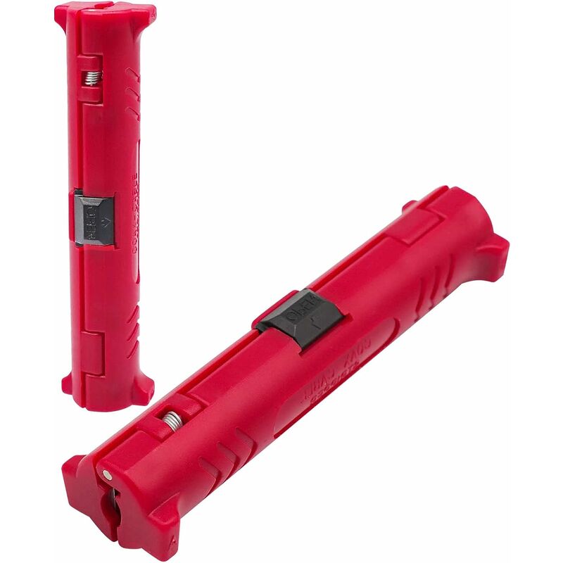Splacavi universali per cavi coassiali, utilissimo strumento per spellare tutti i comuni cavi coassiali, ad es. per l'installazione di cavi satellitari o video Crimper, guaina del cavo, separazione dell'isolamento, lavorazione del cavo rapida e pulita, nessun danno, adatto a tutti i diametri di cavo comuni 4 lame di taglio (2 per lato) - lato A per guaina esterna, lato B per isolamento interno. Pulisci velocemente il trattamento dei cavi senza danneggiarli. Adatto a tutti i diametri di cavo comuni La spelafili ha una lama all'estremità. Lato A: estremità con diametro maggiore Lato B: estremità con diametro minore Specifiche: Colore: Rosso, Taglia: 9,8 x 2,5 x 2,5 cm. Materiale: ABS + SK-5. Il pacchetto include: 2 * spelafili universale.