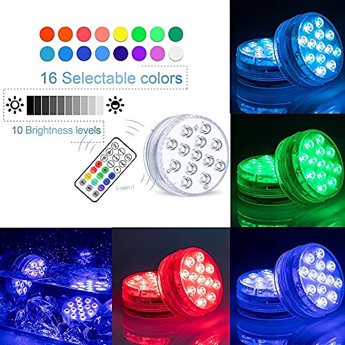 【RGB multicolore, luminosità più brillante】 Ogni luce sommergibile ha 13 perline luminose a LED, che hanno una luminosità maggiore rispetto a 10 perline a LED. Puoi facilmente controllare la luminosità con il telecomando, fornendo 4 modalità di cambio colore dinamico e 16 modalità statiche di colori diversi, 5 livelli di regolazione della luminosità.