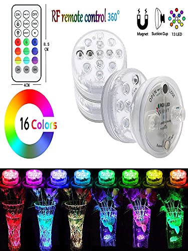 2 PEZZI Luce Subacquea Impermeabile LED RGB Piscina, Sommergibile Luci Led Multicolore con Telecomando Ventose Sommergibile Luci Led Multicolore IP68 Impermeabile Luci per Acquario/Nuziale/Partito