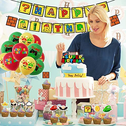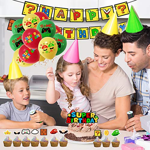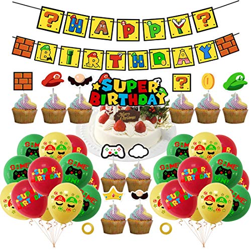 34 Pezzi Super Mario Palloncini HANEL-Feste Compleanno Mario Happy Birthday Banner Cake Topper Decorazione per Feste di Compleanno Cartoon Mario Forniture per Baby Shower