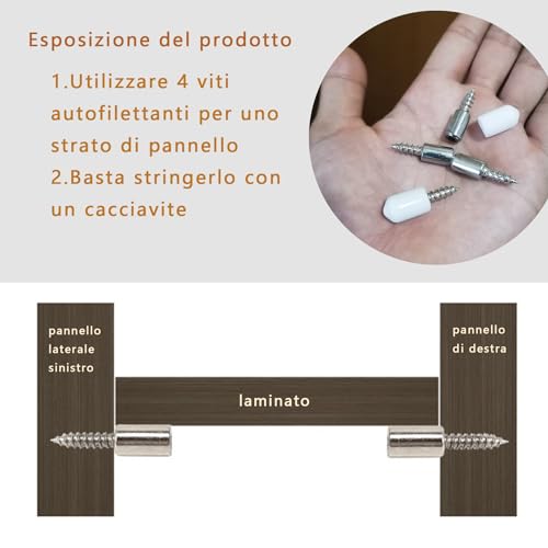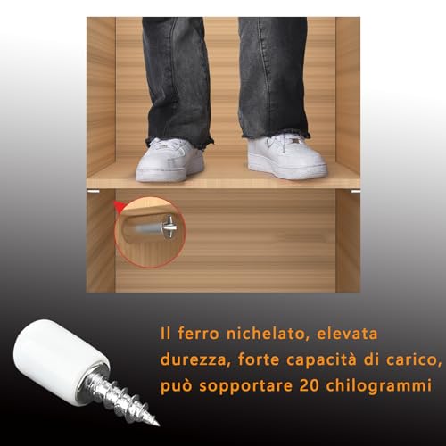Elevata Capacità di Carico: Nonostante le dimensioni ridotte, ciascun perno può sostenere fino a 10 kg di peso, il che significa che con soli 4 di questi robusti supporti puoi contare su una notevole capacità di carico.