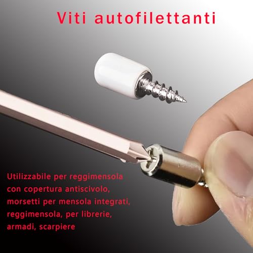 Contenuto del Pacchetto: Il prodotto include 36 x Perni autofilettanti Qrity e 36 x Manicotti in gomma antiscivolo. Hai tutto ciò di cui hai bisogno per installare i tuoi scaffali o mensole con facilità e sicurezza.