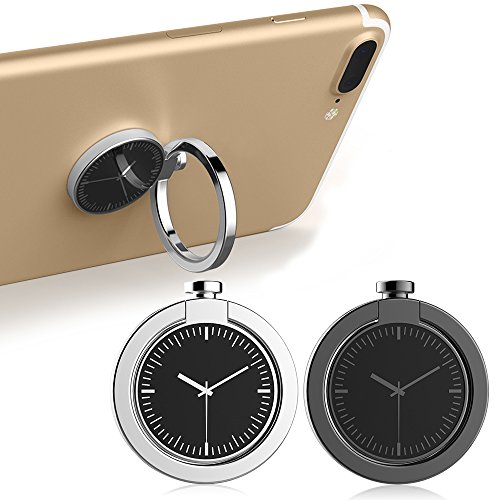2 Pezzi Supporto ad Anello Cellulare a Forma di Orologio, FineGood Universale a 360 Gradi per il Montaggio Magnetico di per iPhone, iPad, Galaxy Samsung - Nero e Argento