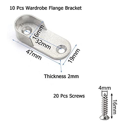【Confezione da 10】 La confezione include 10 pezzi di staffa per binario per guardaroba e 20 viti di montaggio, in colore argento e in stile classico. Strumenti pratici ed estetici per la tua casa. Si prega di confermare la dimensione della staffa prima dell'acquisto.