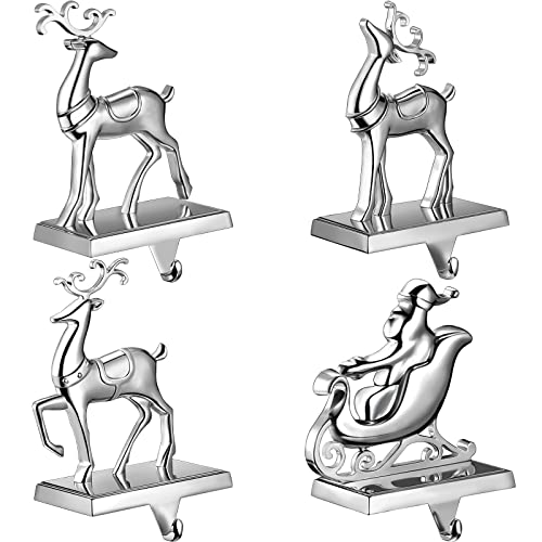4 Pezzi Supporto per Calza Renna Alce Supporto per Caminetto Natalizio Decor Gancio per Calza in Lega di Alluminio Natalizio Ganci per Camino in Argento per Natale Calze Appese Camino