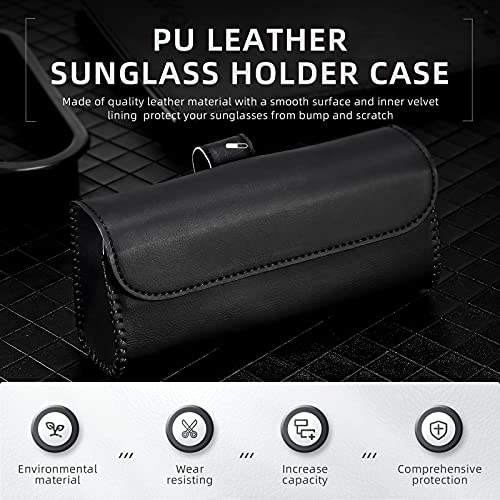 Materiale durevole: la custodia per occhiali da auto è realizzata in pelle di qualità, con una superficie liscia e il materiale interno in velluto è stente alle alte temperature e agli urti per evitare graffi, stente all'usura, non facile da dividere, sfaldare e rompere, che può essere applicata a lungo
