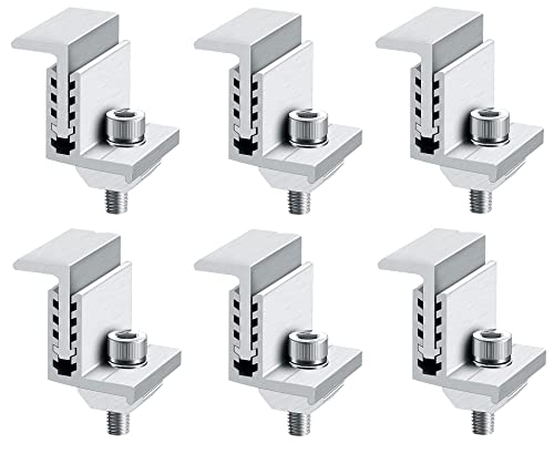Supporto regolabile per pannelli solari: supporto per modulo solare, montaggio modulo solare, adatto per telai solari da 35 - 50 mm, riceverete 6 supporti per pannello solare, inclusi fissaggi a vite, il supporto viene fornito con un kit completo.