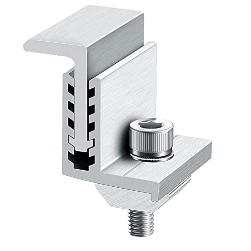 Materiale in lega di alluminio: il morsetto a energia solare è realizzato in lega di alluminio anodizzato AL-6005T5, supporto per impianto elettrico a balconi, altamente resistente alla corrosione, robusto, resistente ai raggi UV, isolante e durevole. Il supporto per modulo solare non pregiudica il normale funzionamento anche in caso di forte freddo e luce solare.