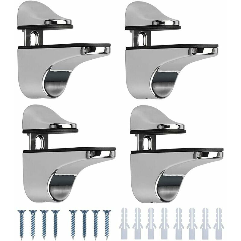 spessore Confezione Contenuto: 4 pezzi di partizioni in vetro (compreso l'hardware di montaggio: 8 viti, 8 tasselli). I supporti a parete per mensole conferiscono a qualsiasi stanza della casa uno stile raffinato Installazione semplice: viti alla parete con fissaggi forniti, quindi regolare semplicemente lo spazio tra le ganasce per fissarlo alla mensola con le viti situate nella parte inferiore della staffa Applicazione: le staffe per mensole a muro hanno un design pratico e regolabile e una struttura stabile, che è adatto per tavole di vetro o di legno su uno scaffale, un espositore per stand, una mensola da giardino, staffe per pareti esterne e una mensola in vetro per il bagno, ecc