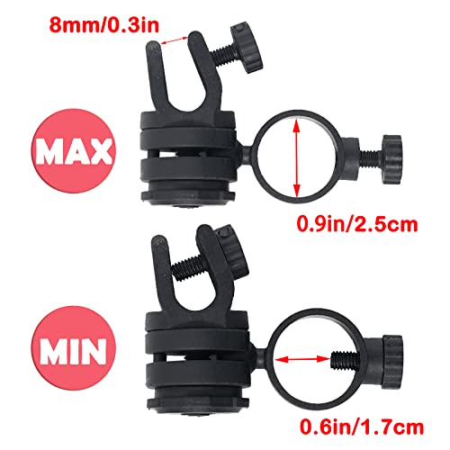 【REGOLABILE】: La clip del supporto della torcia può essere ruotata di 360 gradi, il che supporta la regolazione della torcia a LED in qualsiasi direzione. Con vite di regolazione, può essere regolato in base alle dimensioni della torcia.
