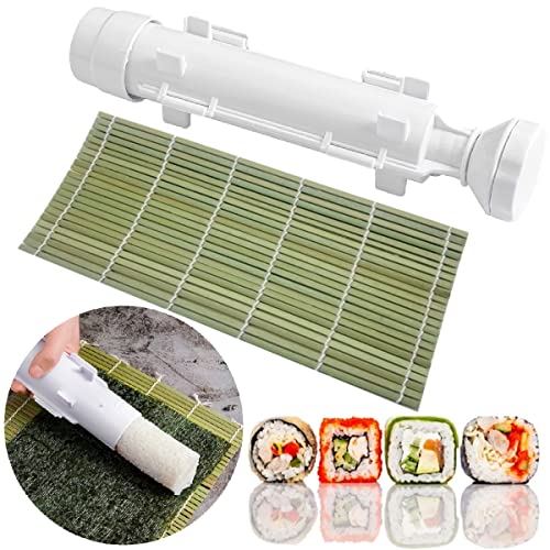 2 pezzi Sushi Maker & Bamboo Sushi Mat Set, Onigiri stampo fai da te cilindro fatto in casa a forma di bazooka Sushi Fare Strumento da cucina