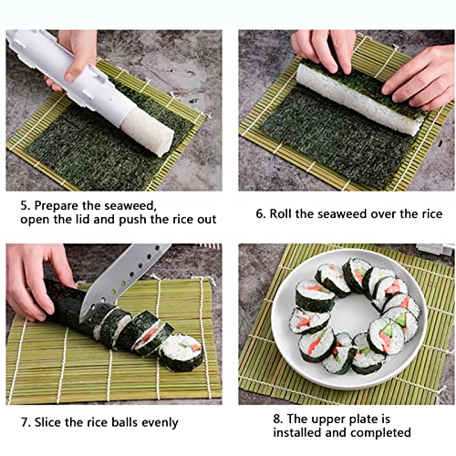 I prodotti includono: Sushi Maker & Bamboo Sushi Mat, 2Pcs Set. Viene selezionato il materiale PP di alta qualità, non tossico e innocuo, ed è più affidabile da usare.