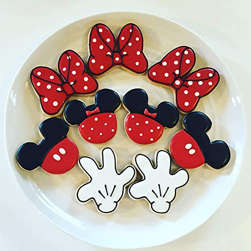 【set di 6 formine per biscotti】Il pacchetto include:tra cui testa di testa di Minnie,testa di Topolino,mano Mickey,laterale Mickey testa,fiocco,Paperino,Ti offre le diverse forme classiche per la tua festa.