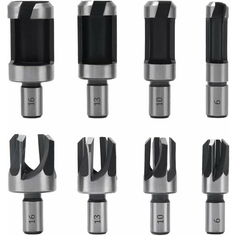 Varie dimensioni: questo set include 4 trapani a cono e 4 trapani a cono. artigli per soddisfare le vostre esigenze. Le tue esigenze lavorative quotidiane. Ogni stampo ha quattro dimensioni, 1/4", 3/8", 1/2", 5/8" (6 mm / 10 mm / 13 mm / 16 mm). Diametro asta: circa 9,5 mm. Acciaio al carbonio di alta qualità: il set taglia sughero ha un diametro di 1/4 di pollice. Il legno proviene dall'acciaio al carbonio, durevole e resistente allo strappo. Corrosione, alta precisione, alta resistenza e con una superficie liscia. Funzioni pratiche: i punzoni sono smussati 4 denti si traducono in spine coniche per frese di riempimento, mentre i punzoni standard vengono utilizzati per rimuovere le imperfezioni del legno. Ampie applicazioni: adatto per trapano da banco e trapano a colonna. D'altra parte, si consiglia di utilizzare trapani da banco per un funzionamento più stabile e una maggiore efficienza. lavoro migliorato. Nota: la velocità non dovrebbe essere troppo alta, perché è facile fumare