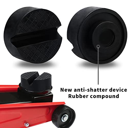 Protezione e Sicurezza: Martinetto tappetino in gomma superficie ha una tacca,È garantito un fissaggio ideale sul martinetto.La superficie waffle offre la migliore protezione antiscivolo e mantiene la tua auto ben protetta.La rientranza sul lato inferiore del cuscinetto in gomma garantisce una presa stabile sulla piastra del martinetto.