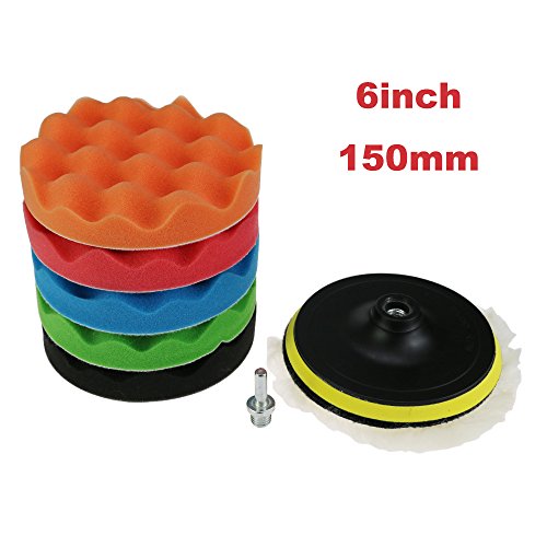 7 pezzi Tamponi per lucidatura con gommini da 150 mm con kit di adattatori per trapano per lucidatura auto
