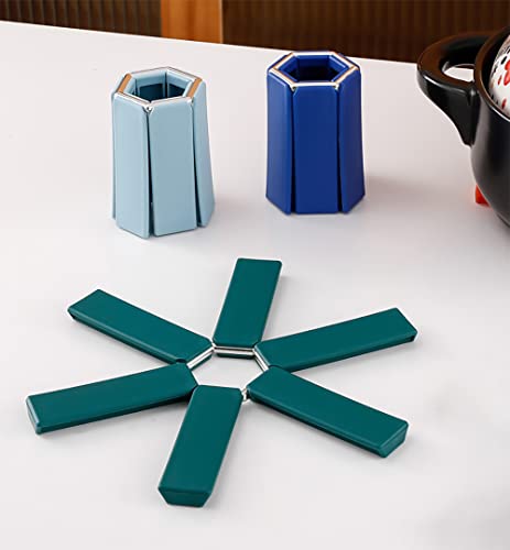 2 Pezzi Tappetini Antiscivolo Sottopentola Pieghevole a Prova di Calore Protezione per Piano di Lavoro Resistente al Calore Sottopentola da Cucina Sottopentola Pieghevole (Blu)