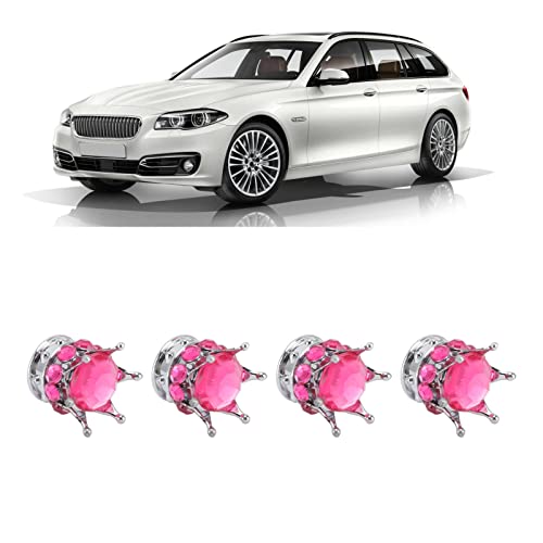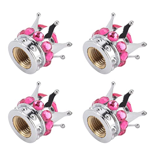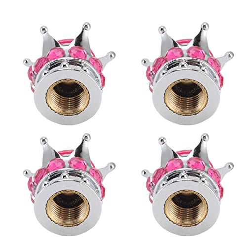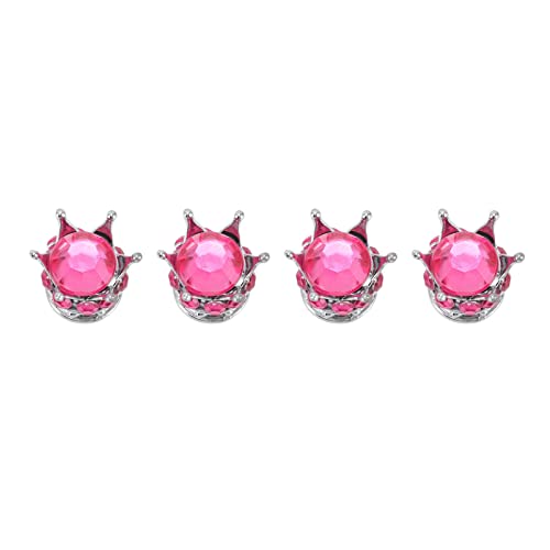 4 Pezzi Tappi Copri Valvola Stelo Ruota Pneumatico, Coperchi Valvole Aria ABS Ad Alto Polimero, Stile Corona Universale, Sostituzione Tappo Valvola Aria per Auto Camion Biciclette(rosa rossa)