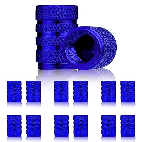 AIEX 12 pezzi tappi Pneumatici Auto, Tappi per Valvole Auto in Alluminio Tappi Pneumatici a Prova d'Aria Tappi Ruote Auto Tappi Stelo Valvola Pneumatici per Auto SUV Camion Moto Biciclette (Blu)