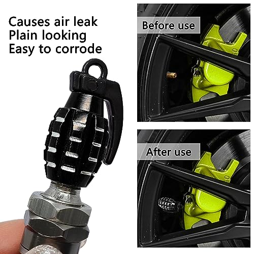 【Materiale Premium】La Tappi Pneumatici Valvola Mano Forma Granata è realizzata in lega di alluminio di alta qualità e le maniglie sono realizzate in plastica di alta qualità. Questi tappi per pneumatici per impieghi gravosi sono a prova di perdite d'aria, a prova di polvere e agenti atmosferici, possiedono una buona robustezza e durata. Possono essere usati con fiducia anche se c'è un clima estremo.