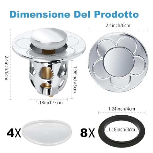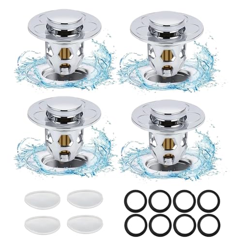 4 Pezzi Tappo Lavandino Bagno,Lavabo Bagno Universale Pop up,Tappi Per Lavandino Bagno Click Clack,Tappi per Lavandino Bagno con Filtro Anti Clogging per Cucina Vasca (34-40mm)