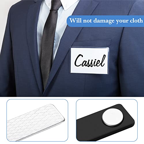 Facile da usare: questi badge identificativi a 2 magneti sono facili da usare, devi solo staccare la pellicola e incollarla sul tuo biglietto da visita e mettere il foglio di plastica nei tuoi abiti o altri vestiti, i magneti terranno il tuo biglietto da visita in posizione stabilmente