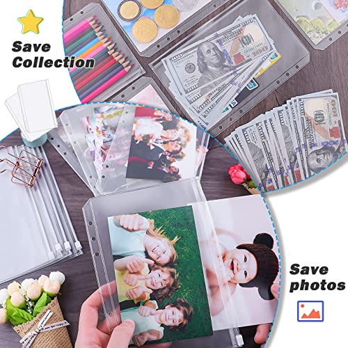 20 Pezzi Tasche per Raccoglitore A5 Borsa per Raccoglitore a 6 Fori Cartella con Cerniera in Plastica con Etichette a colori per Raccoglitore Documenti