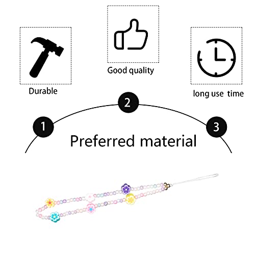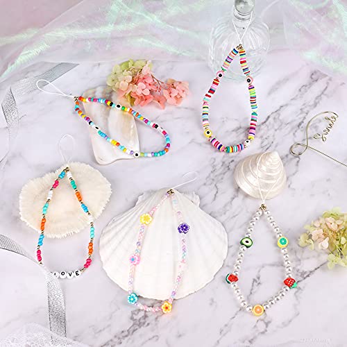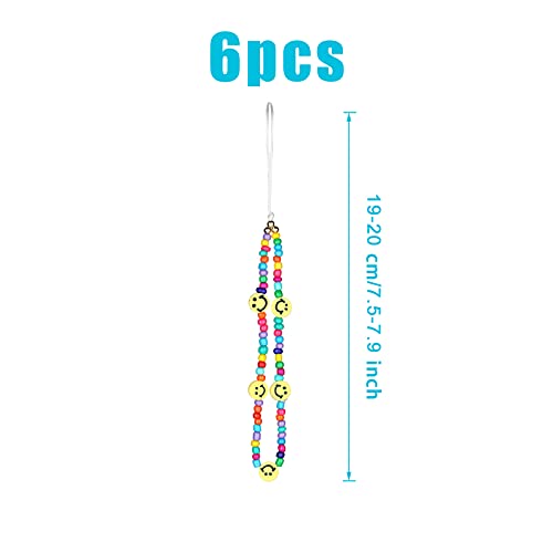 AIEX 6 Pezzi Telefono Charm Phone Chain Strap Cinturino da Polso Arcobaleno Faccina Sorridente Fiore Frutta Malocchio Perla Lettere Perline Acriliche Fatte a Mano Accessorio Portachiavi per Donne