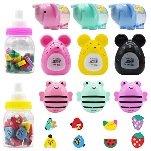 Contenuto della confezione: 9 temperamatite animali (api, elefanti, topi), 3 bottiglie di gomme per bottiglie di latte, adatte a bambini e studenti, alta qualità e prezzo basso.