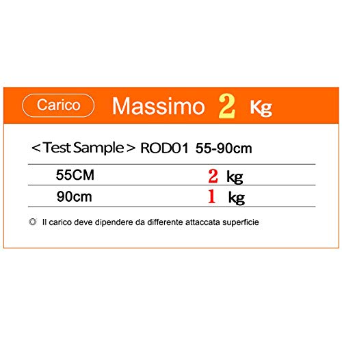 【SPECIFICHE】3 pezzi, regolabile da 55cm a 90cm, diametro 2,1cm, si prega di notare che il bastone deve essere più lungo di distanza di parete circa 5-10 cm, il peso massimo degli oggetti è meglio di non superare 2 chilogrammi
