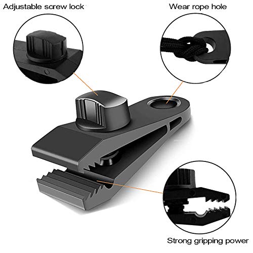 Installazione Semplice: la clip da campeggio può essere facilmente utilizzata semplicemente stringendo o allentando la manopola, fornendo così un eccellente controllo della pressione di serraggio senza danneggiare il tessuto.